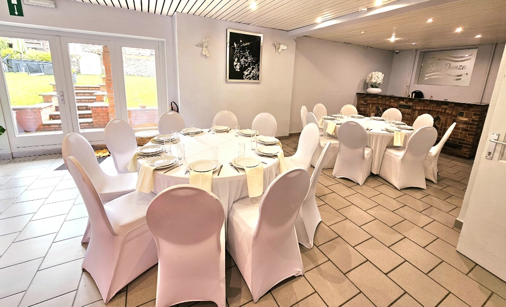 D'un côté, la salle Veni&Vidi , une salle de 90 convives accompagnée d'une plus petite salle polyvalente.