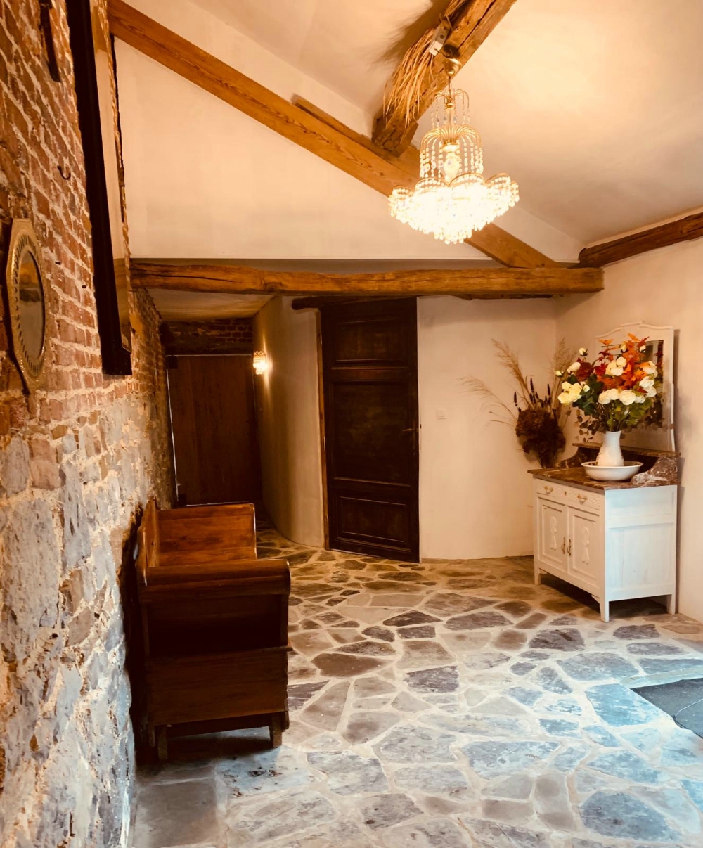 Au fil des années, cette ancienne grange et ses dépendances ont été façonnées à la main, avec patience et passion, en conservant leur caractère d’origine : murs de briques, charpente ancienne, portes issues du château,… Chaque détail témoigne du passé du lieu.